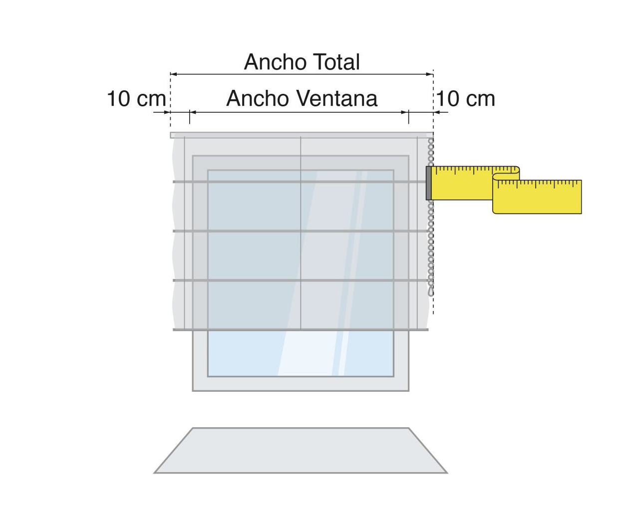 Generalmente, deberemos medir 10 cm a cada lado exterior del marco de la ventana.