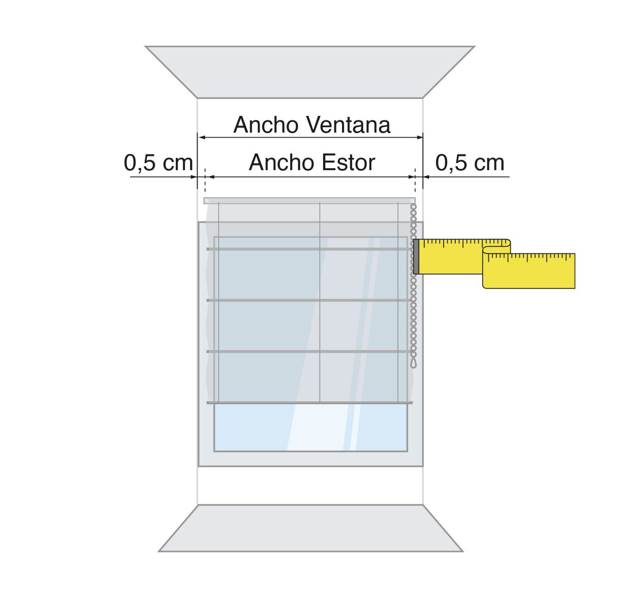 Si la ventana está entre paredes, mediremos el hueco que tenemos y descontaremos 0.5 cm a cada lado.