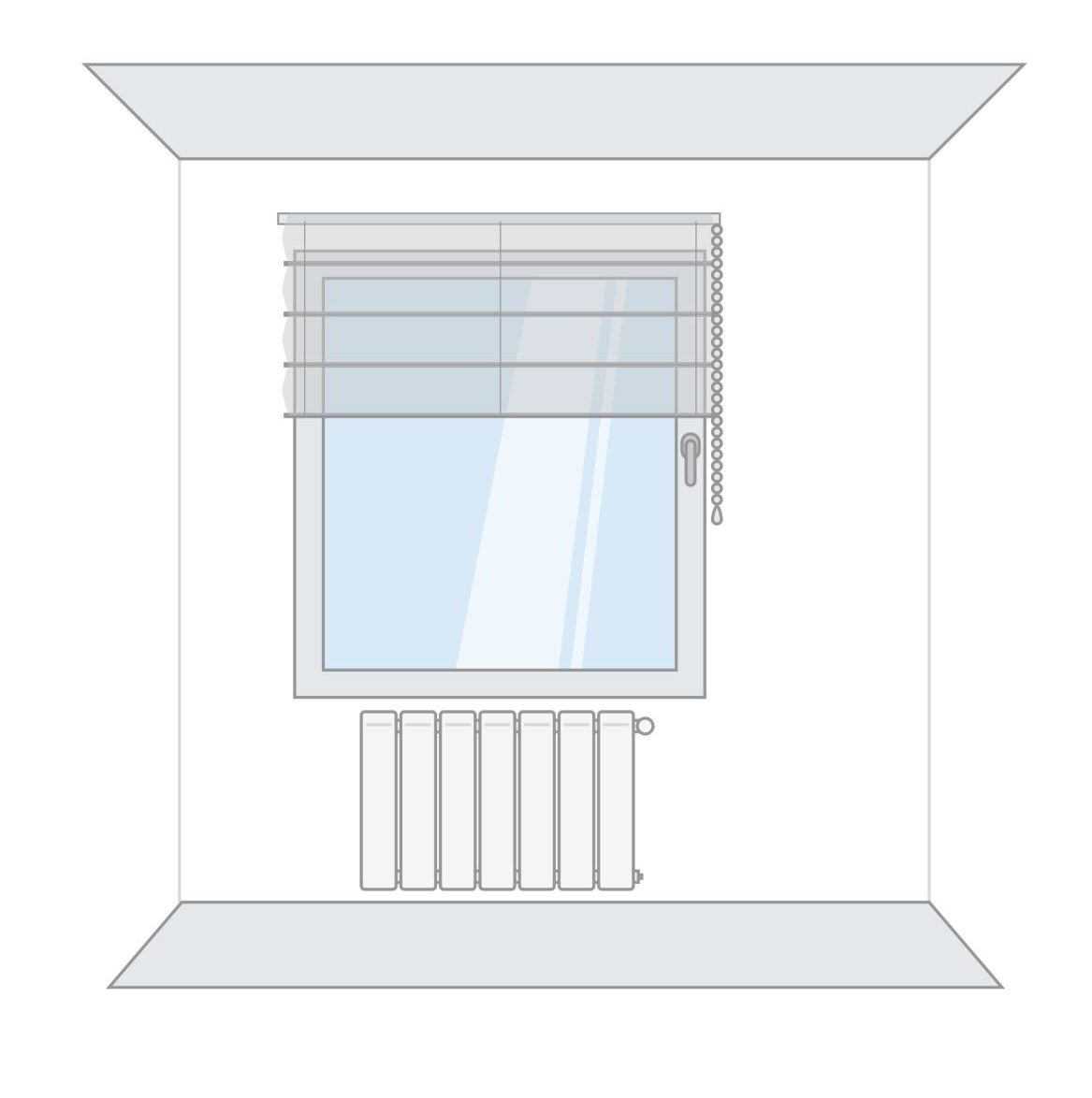 A la hora de medir la altura de tu estor plegable, recuerda tener en cuenta posibles obstáculos como el tirador de la ventana, una estufa o radiador, un sofá, etc.