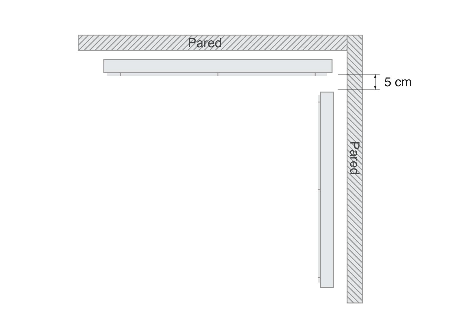 Si resulta que en un de los lados no tenemos espacio, mediremos desde la esquina dónde no hay hueco hasta el otro lado y le sumaremos 10 cm.