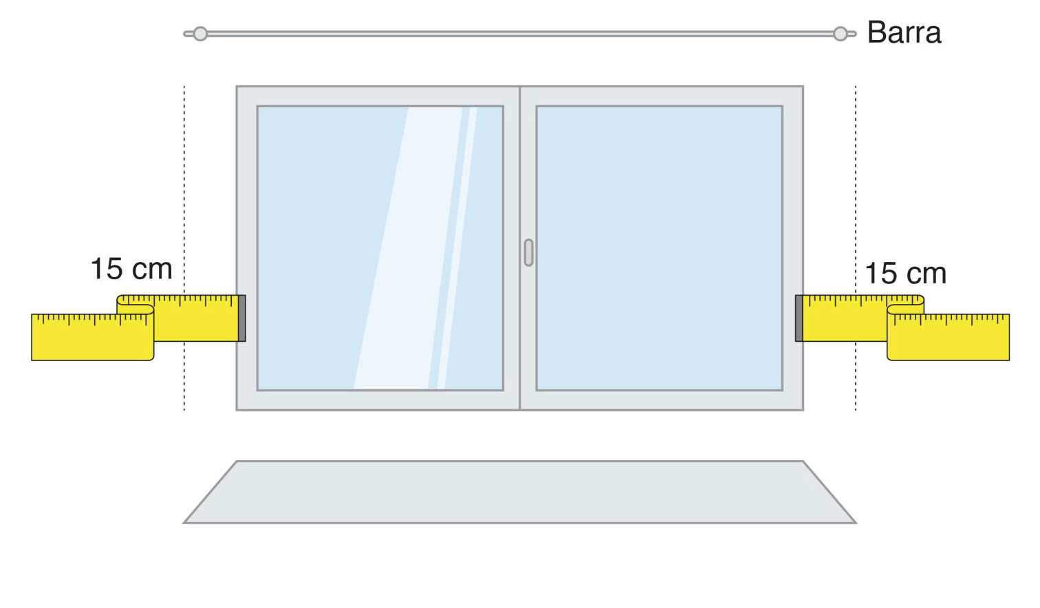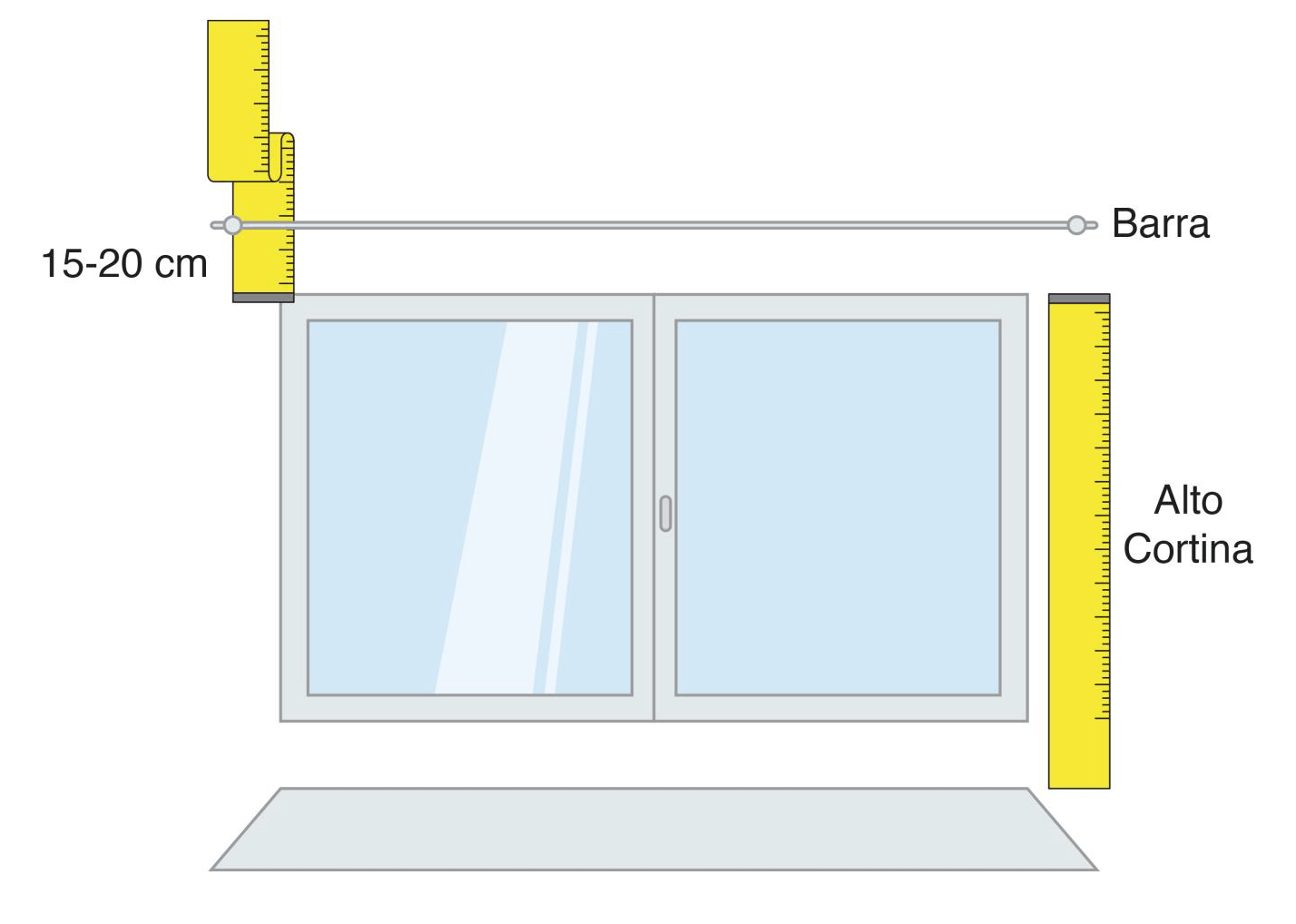 Si ya dispones de riel instalado el ancho de la cortina será el del riel, si no dispones de riel recomendamos que midas el ancho de la ventana y sumes 15 o 20 cm a cada lado del marco.