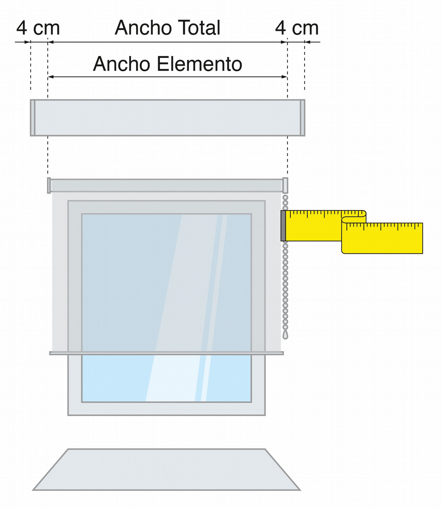 Para calcular el ancho de la galería se ha de tener en cuenta la medida del elemento que deseamos cubrir: (estor enrollable, panel japonés, cortina, etc.). A la medida de ancho del elemento le hemos de sumar 4 cm a cada lado. Con ello conseguiremos que la galería no quede demasiado justa.