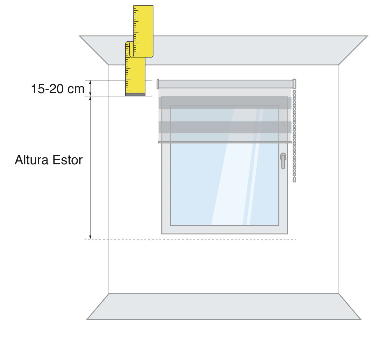 Añadimos 15 o 20 cm a la parte superior de la ventana y desde ahí hasta dónde queramos que llegue el estor: